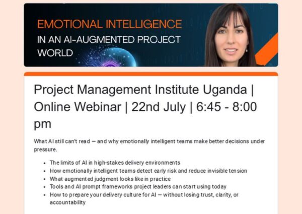 About the Webinar In an era of AI-driven project management, human emotional intelligence remains the irreplaceable edge. Join PMI Uganda